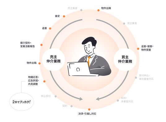 不動産売買では、申込から決済・引渡しまでに、多岐にわたる書類準備やローン手続き、関係各所との調整が発生します。不動産売買仲介会社(以下「仲介会社」)の営業担当者は、これらを並行して進める必要があるため、タスク漏れが発生しやすい状況にありました。また、進捗管理が担当者ごとに属人化することも多く、「組織全体で進捗状況を把握しづらい」「業務ノウハウが社内に蓄積されにくい」といった課題もありました。一方、エンドユーザー(物件の売主・買主)にとっても、必要書類や費用、今後の段取りは把握しづらいケースも多くあり、「次に何をすべきか」が不明確な状態は、顧客満足度を低下させる要因となっていました。