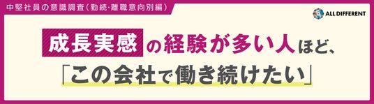 累計13,000社420万人以上の組織開発・人材育成を支援するALL DIFFERENT(オールディファレント)株式会社(所在地:東京都千代田区 代表取締役社長:眞崎大輔)および「人と組織の未来創り(R)」に関する調査・研究を行うラーニングイノベーション総合研究所(R)は、2024年12月に社会人5年目以上の役職がついていない中堅社員*800人に対し意識調査を行いました。本リリースでは、中堅社員の「勤続・離職意向」に関する調査・分析した結果を公表いたします。