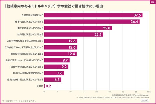 2.今の会社で働き続けたい理由、「人間関係が良好」「仕事内容に満足」が上位に