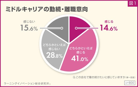 1.「今の会社で働き続けたい」ミドルキャリアは55.6%と、半数以上