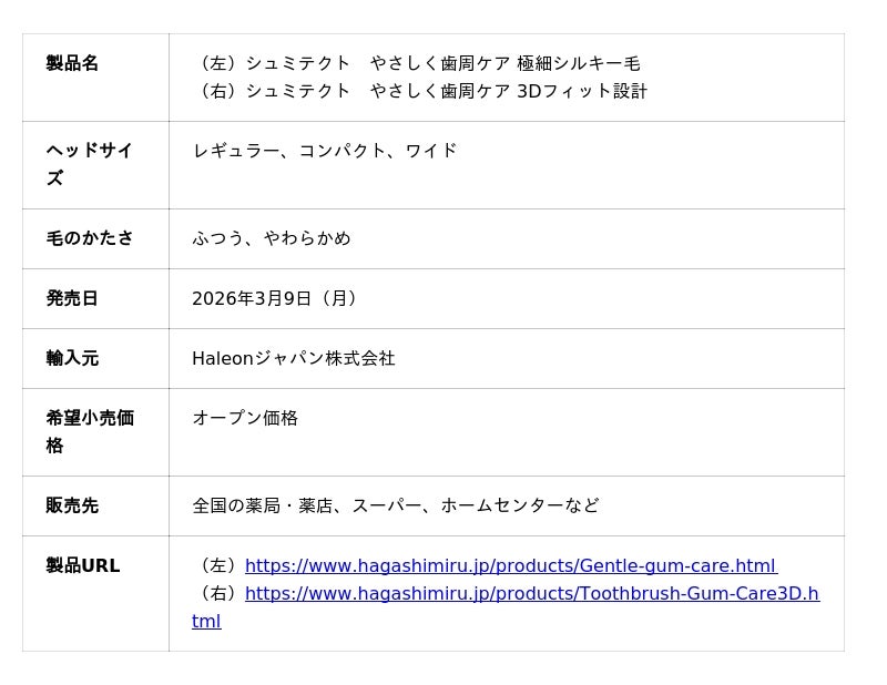Haleonジャパン株式会社(代表取締役社長:野上 麻理、本社:東京都港区)は売上No.1*1のハミガキブランド「シュミテクト」より、届きにくい部位までしっかり磨ける超コンパクトヘッドを採用したハブラシ『シュミテクト やさしく歯周ケア 超コンパクト ハブラシ』を、2026年3月9日から全国で新発売いたします。