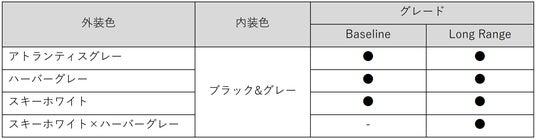 - Long Rangeにはシートベンチレーションと新しいデザインのホイールを専用装備