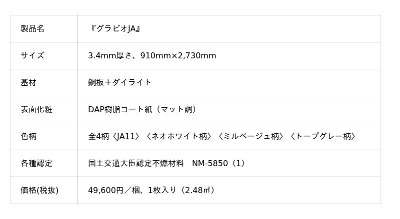 ◇不燃壁材『グラビオJA』の特長