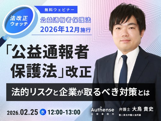 【無料ウェビナー開催2026.2.25】「公益通報者保護法」改正法的リスクと企業が取るべき対策とは|Authense法律事務所