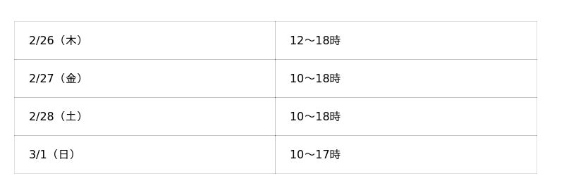 ■開催日時: 2026年2月26日(木)~3月1日(日)4日間