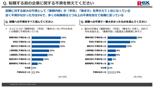 - ただし、前職に対しての不満は、前職の業種(監査法人、コンサルティングファーム、事業会社)別にみると、構成比が変わってくると想定される