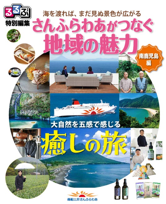 るるぶ特別編集版「さんふらわあがつなぐ地域の魅力 南鹿児島編」は、「癒し」をテーマに、南鹿児島の雄大な自然と、地域に根ざした人々の輝きを丁寧に紹介するフリーペーパーです。2026年2月12日発行の本誌では、志布志港から始まる南鹿児島の旅を通して、一般的な旅雑誌では出会えないような深い魅力や、地元グルメ・知覧茶・焼酎など南鹿児島ブランドの誕生秘話、そして生産者の想いなど、人と自然が織りなす癒しのエピソードをたっぷりご紹介しています。