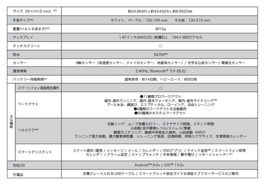 ※2:本製品は一般的なウェルネス・フィットネス目的の製品であり、医療機器として設計されたものではなく、病気などの診断、治療、予防の目的にはご使用いただけません。