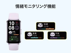 新たに「情緒モニタリング」が追加されました。あなたの「快適」「普通」「不快」の3段階の状態を、インテリジェントに推測し、自動で記録することができます。もし「不快」の状態が続いているときは、ウォッチに内蔵されている呼吸エクササイズを使ってリラックスしてみるなど、能動的にアクションがとれます。情緒の状態に応じて表情が変わるかわいいパンダの文字盤も搭載。