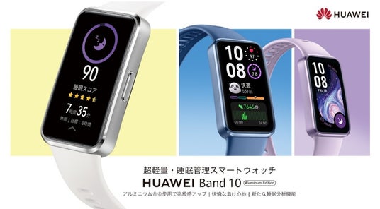 薄型軽量で大人気のシリーズ最新作!アルミ合金使用で高級感がアップし、より専門的な睡眠管理を搭載した「HUAWEI Band 10」 4月10日(木)より発売