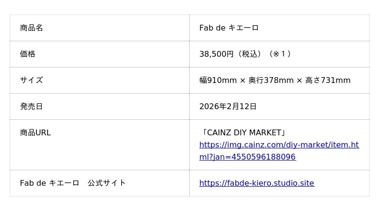 株式会社カインズ(本部:埼玉県本庄市、代表取締役社長 CEO:高家 正行)は、電気も水も使わず、家庭から出る生ごみを分解する組み立て式生ごみ処理容器「Fab de キエーロ(ファブ デ キエーロ)」を、DIYで仕上げるオーダーカット家具プラットフォーム「CAINZ DIY MARKET」で2月12日から販売を開始することをお知らせします。