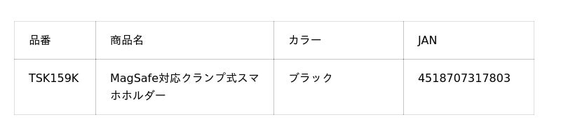多摩電子工業株式会社(本社:神奈川県川崎市、代表取締役 執行役員社長 杉山一)は、MagSafeの強力な磁力を活かし、スマートフォンを自由な角度で固定できる 「MagSafe対応クランプ式ホルダー(TSK159K)」 を発売いたしました。