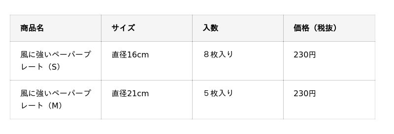 「風に強いペーパープレート」は、Sサイズ・Mサイズの2つのサイズ展開で、2026年3月より順次、全国のスーパーマーケット・ホームセンター・専門店・量販店で発売予定です。
