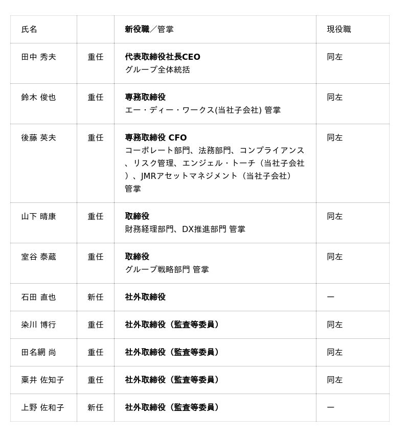 なお、役員人事につきましては、2026年3月25日開催予定の当社第6期定時株主総会及びその後の取締役会において正式に決定する予定です。
