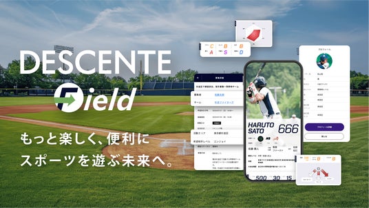 当社は、「すべての人々にスポーツを遊ぶ楽しさを」の企業理念のもと、誰もがチームスポーツに参加がしやすい環境を整え、より多くの人々が長くスポーツを楽しめる市場の拡大を目的として、チームスポーツ参加支援サイト「DESCENTE Field」を開設しました。まずは競技人口の多い野球に特化して、「チーム作成」「個人プロフィール作成」「大会エントリー」「大会管理」などの機能を備えて2025年3月にスタートし、「チームスポーツをより身近に、つながり、続ける」ことを目指します。2026年2月には、新機能として「プロフィールのログ化」「助っ人機能」「試合のマッチング」を搭載し、各種機能を順次アップデートしてまいります。