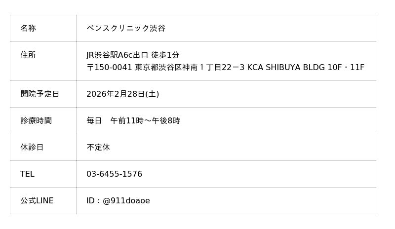ベンスクリニック渋谷 概要