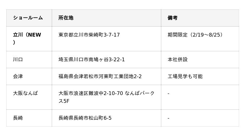 ※立川ショールームは2月19日(木)よりスタートいたします。