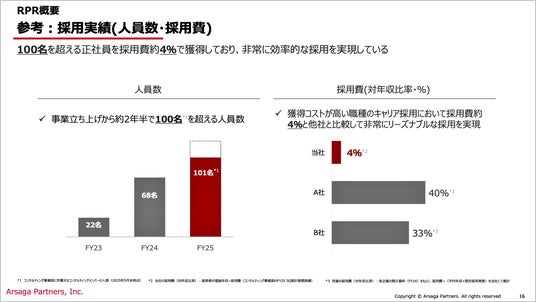 こうした中でアルサーガパートナーズは、「SNSやリファラルを中心とした採用」に継続的に取り組んできました。その取り組みの成果として、コンサルティング本部においては、立ち上げから約2年半で100名を超える規模へと成長しています。