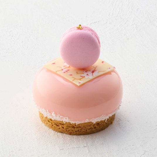 春のやわらかな風をイメージした桃色のムース。華やかな香りの桃のソースと桃のムースをホワイトチョコレートムースで包み、香ばしいサブレにのせました。