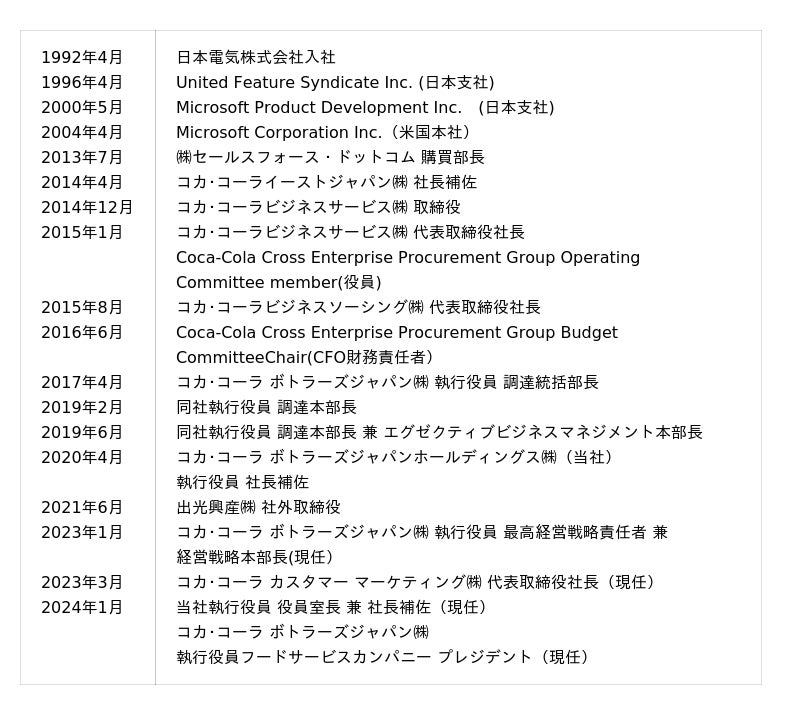 コカ・コーラ ボトラーズジャパンホールディングス 新任代表取締役の就任に関するお知らせ