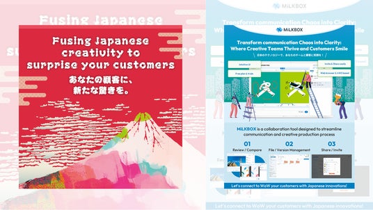 コミュニケーションデザイン事業では、最適なコミュニケーション戦略のプランニングから制作や運用までワンストップで遂行。また、ワークフローを効率化するコミュニケーションツール「MiLKBOX」の開発・運営も行っています。