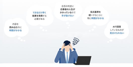 AI.R-Scorerは当初、高校向けの小論文採点支援サービスとして提供を開始しましたが、提供開始後、行政や企業から採用選考や昇格試験などの用途で利用したいという問い合わせが多く寄せられました。直接話を伺うと、入試や採用に関する採点現場においても、大量の採点・審査の業務負荷や採点基準のばらつき是正といった課題が明らかになりました。