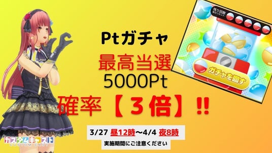 ┃ガチャ3倍強化 Ptガチャの最大ゲット「5000Pt」の確率が、期間限定で3倍になります。
