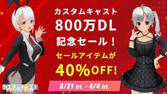 株式会社ドワンゴは、グループ会社の株式会社カスタムキャスト(本社:東京都中央区、代表取締役社長:川崎大和)が提供する3Dアバター作成アプリ『カスタムキャスト』にて、800万ダウンロード突破を記念したキャンペーンを2025年3月26日(水)により実施します。