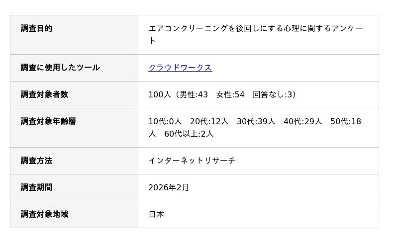 エアコンクリーニングを後回しにする心理に関するアンケート調査の概要