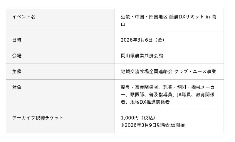 ~酪農DXサミット in 岡山、3月6日開催~