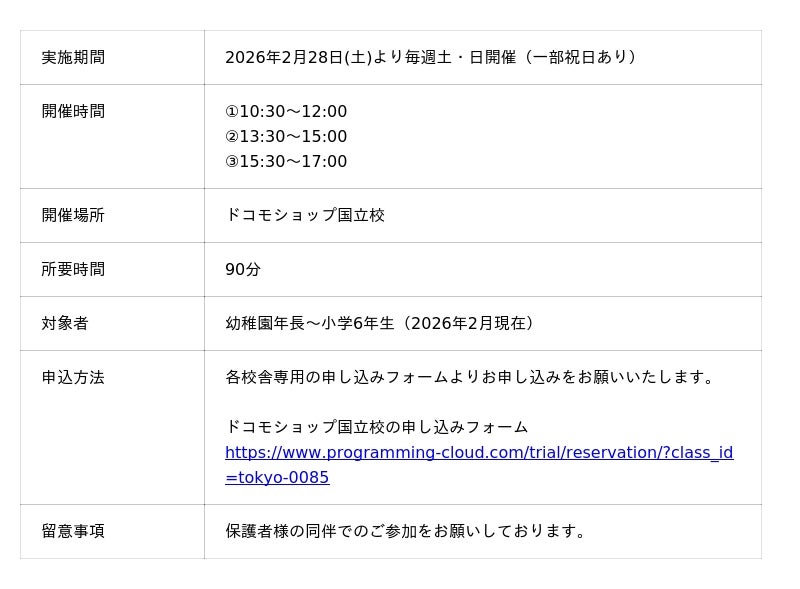 ビックカメラグループの株式会社ラネット(本社:東京都豊島区、以下ラネット)はお子様に絶大な人気を誇る「マインクラフト」の世界で本格的なプログラミングを学べる教室「プロクラ」を、2026年4月1日(水)、東京都国立市の「ドコモショップ国立店」にて新規開校いたします。