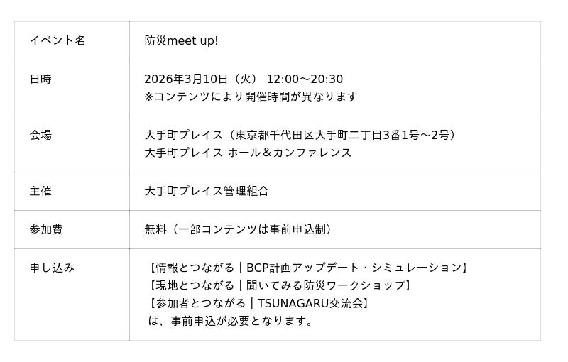 東日本大震災から15年。オフィス街・大手町から提案する、『これからの防災』人と出会い、繋がり、学ぶ。つながる防災イベント「防災meet up!」