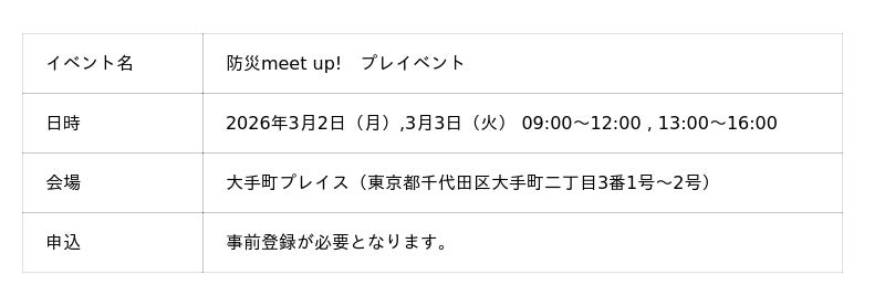 \プレイベントを3月2日と3月3日に開催/防災meet up!の本イベント開催に先駆けて大手町プレイスでは、