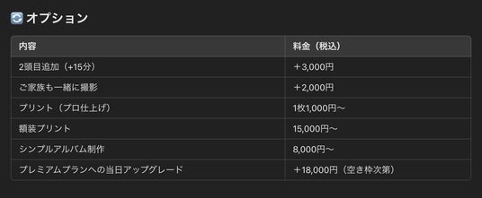 各種オプションあります。お客様に合わせてサービスを提供します。お気楽にご相談ください。
