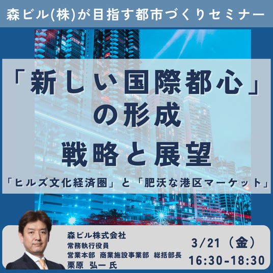 【JPIセミナー】「森ビル(株)が目指す”新しい国際都心”の形成 ~”ヒルズ文化経済圏”と”肥沃な港区マーケット”/その戦略と展望~」3月21日(金)開催