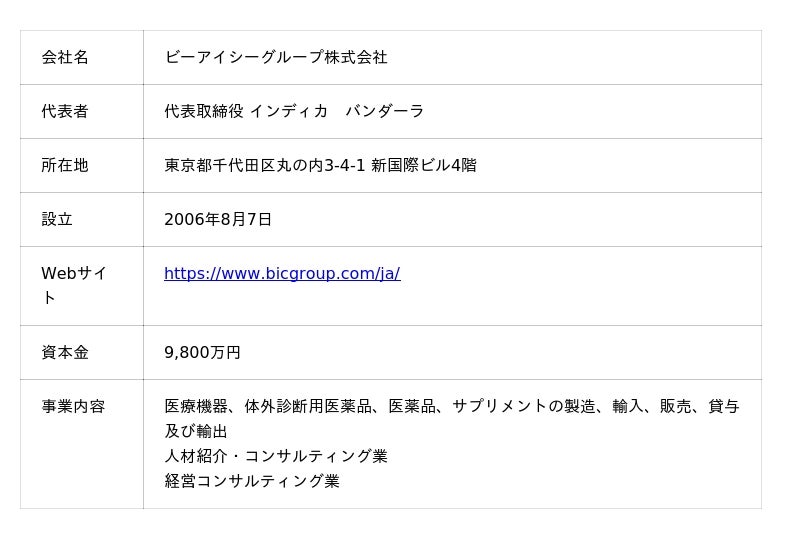 ビーアイシーグループ株式会社は、ヘルスケア業界における革新的なソリューションのプロバイダーであり、専門知識、最先端の製品、カスタマイズされたコンサルティングサービスを通じてメディカルビジネスの標準の再構築に取り組んでいます。 私たちの使命は、お客様の多様なニーズに応え、革新的なソリューションを通じて医療の進歩を推進することです。