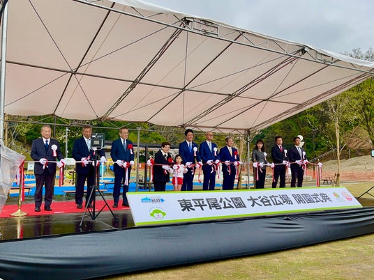 本日、大谷広場リニューアルの「オープニングセレモニー」が開催され、多くの地域の皆さまが見守る中、福岡のまちが花とみどりと笑顔であふれるよう願いを込めてテープカットが行われました。
