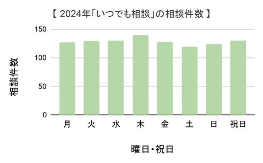 本結果から、原則24時間以内に医療者から返信が受け取れると認識された状態で相談する「いつでも相談」は、利用者に曜日を問わず浸透していること、特に小児科においては「オンライン相談」が祝日の医療機関へのアクセスの受け皿として利用されている可能性があること、そして特定の状況下では祝日利用のニーズがより高まっていることが示されたと考えられます。