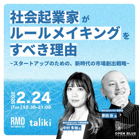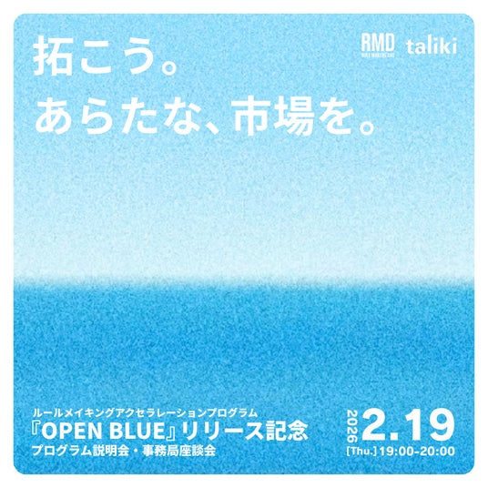 一般社団法人RULEMAKERS DAO(所在地:東京都千代田区、代表理事:塩澤好貴、以下RMD)は、規制の壁や市場の小ささに直面するスタートアップを支援する、日本初(※1)のルールメイキング特化型アクセラレーションプログラム「OPEN BLUE」を正式リリースし、スタートアップの募集を2026年2月19日(木)より開始いたします。