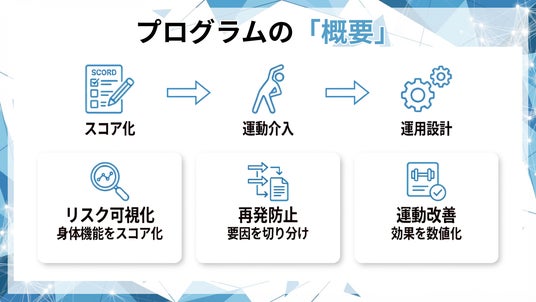 プログラム概要(スコア化×運動介入×運用設計で再発防止を実装)