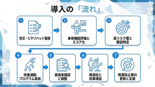 さらに、スコア結果に応じた改善運動を実装し、再測定と効果検証までを運用に組み込みます。