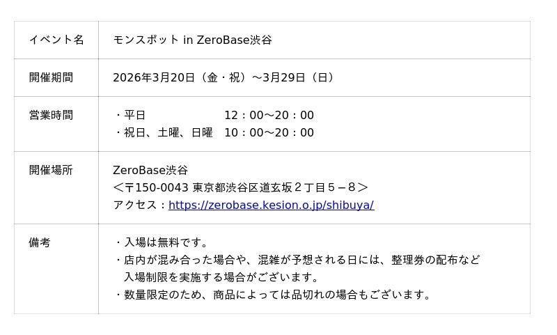 POPUP SHOP「モンスポット in ZeroBase渋谷」2026年3月20日(金・祝)から期間限定オープン!