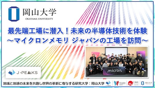 国立大学法人岡山大学(本部:岡山市北区、学長:那須保友)が先導して構成する岡山半導体研究教育推進委員会は2026年2月3日、マイクロンメモリ ジャパン株式会社広島工場へ訪問し、工学部、理学部、経済学部、大学院環境生命自然科学研究科の学生24人と教職員が参加しました。