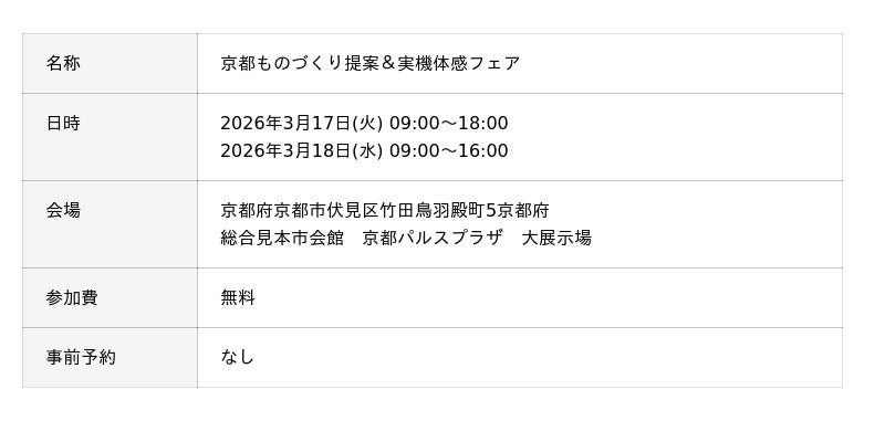 【2026年3月開催】京都ものづくり提案&実機体感フェアに出展|製造業向け大型補助金セミナー登壇(京都パルスプラザ)