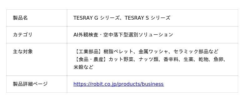 本展示会において弊社は、AI・ソフトウェア・ハードウェアの三位一体により、これまで自動化が困難とされていた「人の感性に頼る検品工程」を刷新する、外観検査自動化ソリューション「TESRAY(テスレイ)」を出展いたしました。【主な展示項目】
