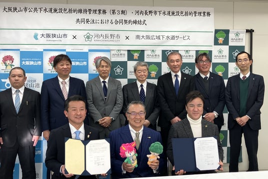 積水化学工業株式会社(代表取締役社長:加藤敬太、以下「積水化学」)の環境・ライフラインカンパニー(プレジデント:平居義幸)は、藤野興業株式会社を代表企業とする8者による共同企業体「南大阪広域下水道サービス」を結成し、国が進める広域連携の構想に先駆けた水の官民連携(ウォーターPPP)レベル3.5(※)事業の共同発注案件として大阪狭山市および河内長野市が共同で公募を行った「大阪狭山市公共下水道施設包括的維持管理業務(第3期)及び河内長野市下水道施設包括的管理業務」につきまして、2月19日付で2市と業務委託契約を締結しましたのでお知らせいたします。