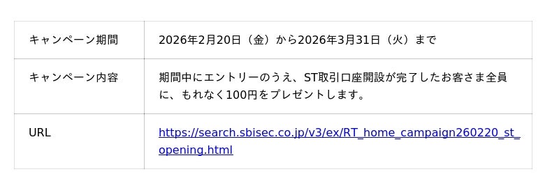 1. もれなく100円プレゼント!ST(セキュリティ・トークン)取引口座開設キャンペーン