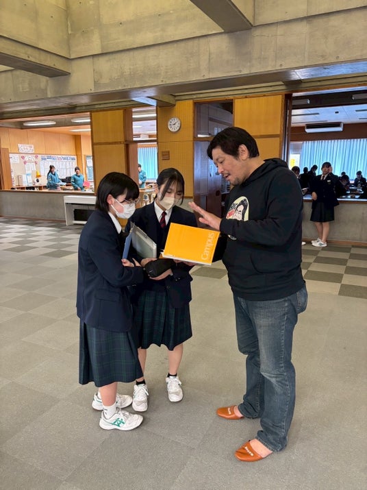 本取り組みは、2025年5月の講演会をきっかけに「今、自分にできること」を考え始めた2年3組が、自主的に文房具回収と募金活動を展開し、2025年12月にカンボジアの難民キャンプでの教育支援(教材を用いた授業)を実現したものです。さらに本講演会では、現地での活用状況を映像・写真で“Return(里帰り)”し、生徒が“Reflect(振り返り)”を行い、次の“Redesign(再設計)”として、遊佐中発の「なかよしノート」「PEACEノート」を新たに制作。国境を越えた学びの循環(CoRe Loop)を、学校全体へ広げました。