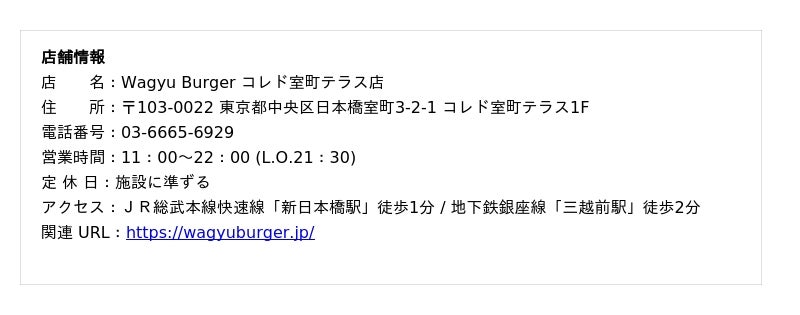 販売店舗:Wagyu Burger コレド室町テラス店