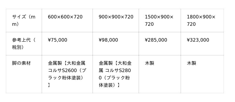 サイズ、参考上代はヒノキのテーブルに準じます。